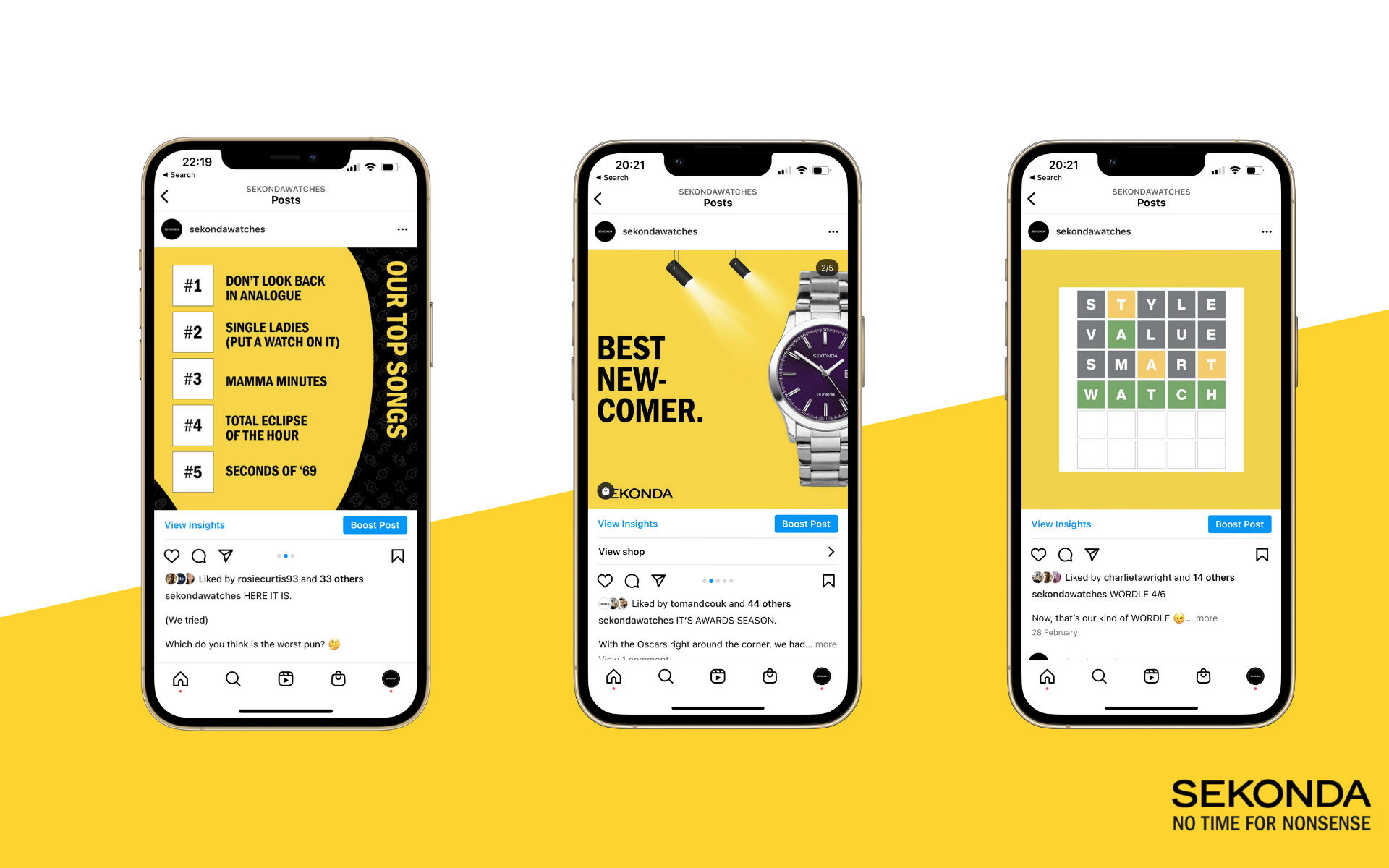 Combining assets pre-created by Sekonda with our ideas, we would hype up their existing audience with engaging social content like ‘This or That’, polls or tying the watches to cultural moments in the world.